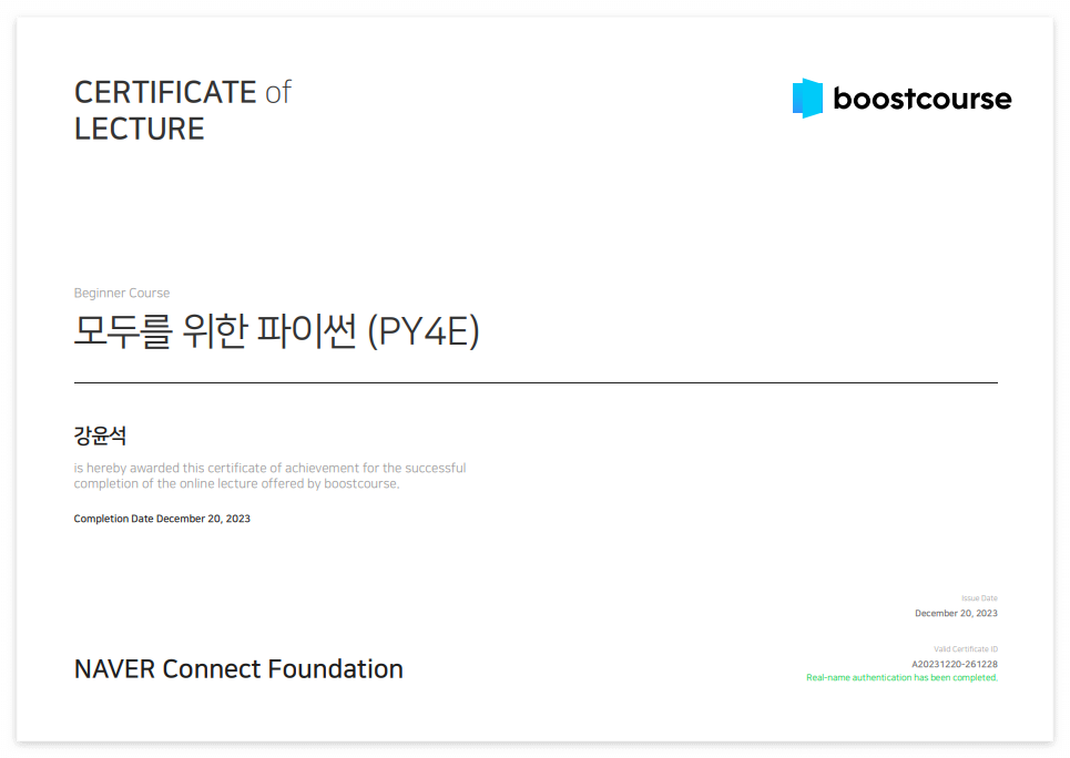 이 강의는 파이썬 강의 분야에서 꽤나 유명하다. 코쎄라에서 가장 유명한 파이썬 강의이기도 하고, 네이버 부스트코스에서 무료로 제공하는 무크 강의이면서 훌륭한 해석과 한글 파일까지 제공하기 때문에 공부하기에 유용하다고 판단했다.