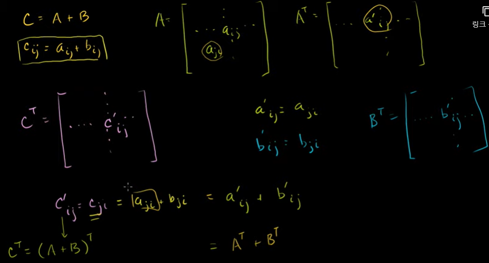 C 전치행렬의 원소 = A 전치행렬의 원소 + B 전치행렬의 원소