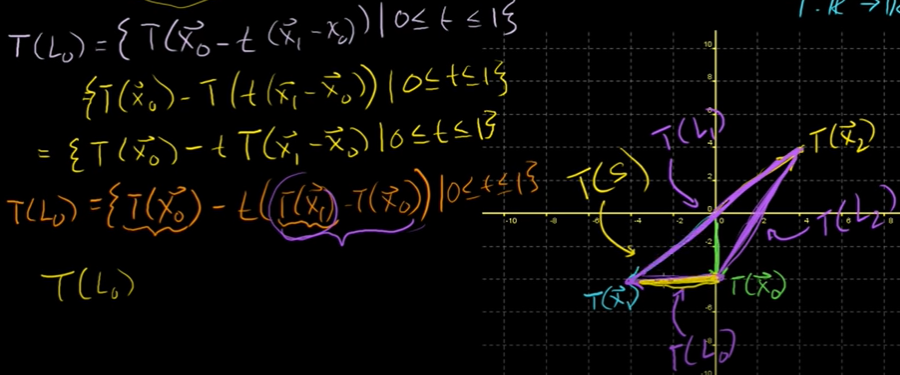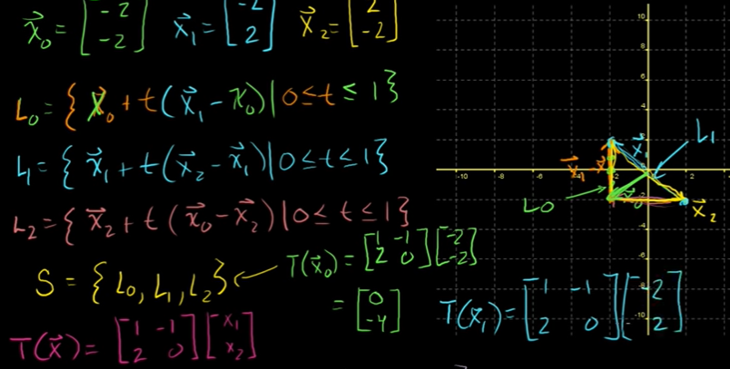삼각형의 x0과 x1사이의 한 변인 L0의 변환은 종점들의 변환점들을 연결하는 선이다.