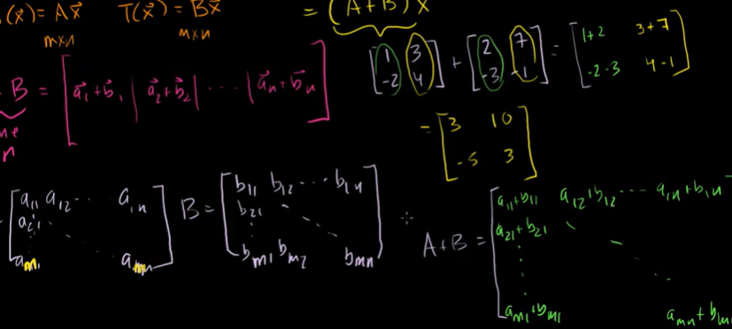 합한 행렬에서의 원소는 각각 행렬의 원소의 합이다.
