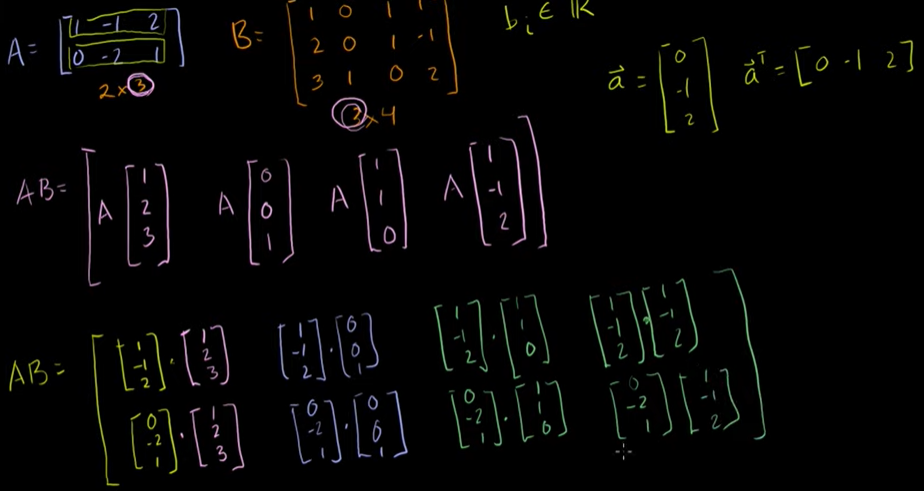 행렬과 행렬의 곱 = 각각의 행과 열의 내적