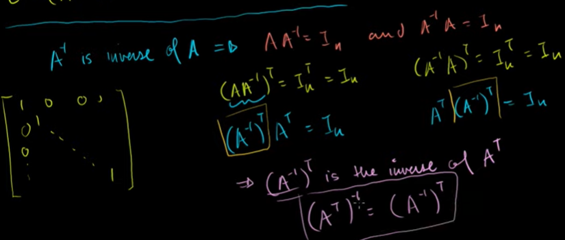 A의 역행렬의 전치행렬 = A 전치행렬의 역수