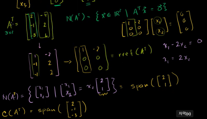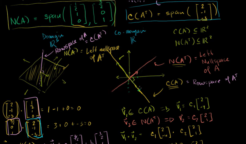A의 열공간이 A의 전치의 영공간과 직교한다. →