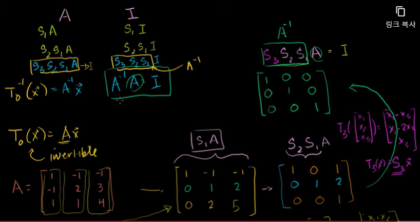 여기서 단위행렬을 찾았다면 역행렬이 존재한다는 것이다.