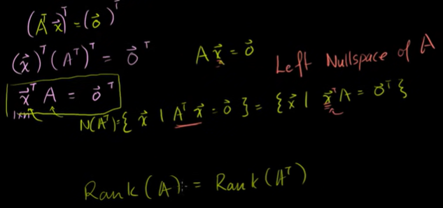 A의 좌영공간이 A의 전치의 영공간 인 것처럼,