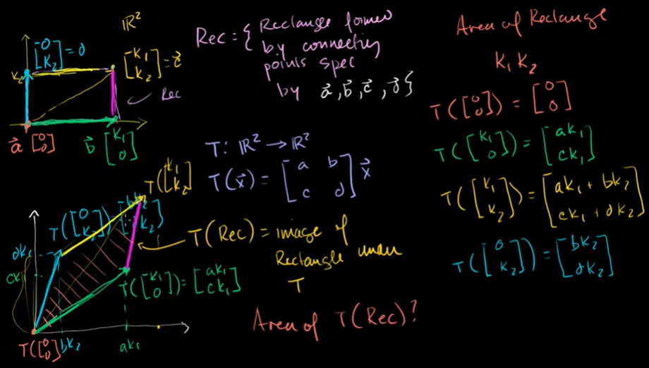 기존 행렬식(det(A)) x 원래 직사각형의 넓이(k1*k2) 와 같다.