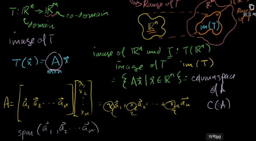Image of T (Im(T)) : T는 R^n에서 R^m으로 간다.