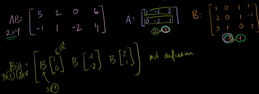 AB는 계산될 수 있지만, BA는 계산될 수 없다.