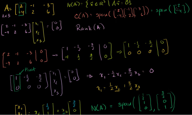 이 식에서 나오는 벡터가 영공간의 선형결합이 된다. span 으로 묶을 수 있는 것이다