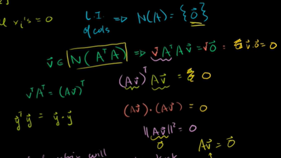 A의 전치행렬과 A의 곱이 영공간이라는 것은 유일한 해가 영벡터라는 뜻이다.