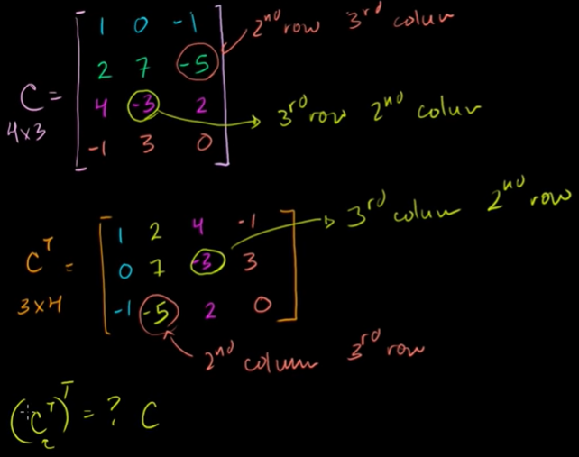 전치행렬에서 몇 개의 열이 선형독립하는지는 원래 행렬에서 몇 개의 행이 선형독립하는지와 같다.