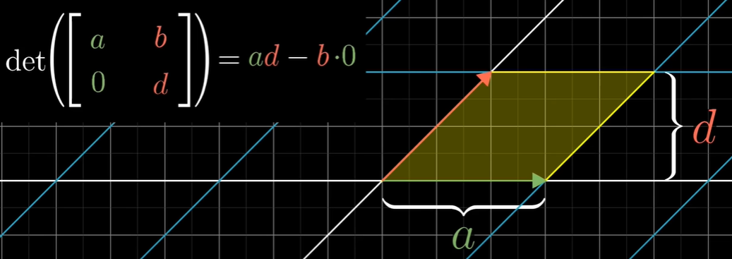 행렬식(determinant)는 변환이 면적을 얼마나 스케일링하는지를 나타내며,