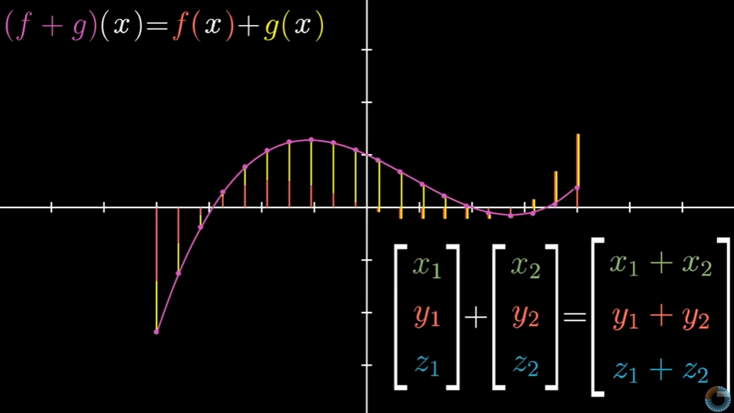 두 벡터를 더하는 것과 마찬가지로 두 함수를 더해 새로운 함수를 구하는 방법이 있다.