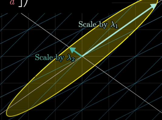 각각의 고유벡터는 '고유치' (eigenvalue) 를 가지게 된다. 변환 도중 늘어나고 줄어드는 정도의 배수이다.