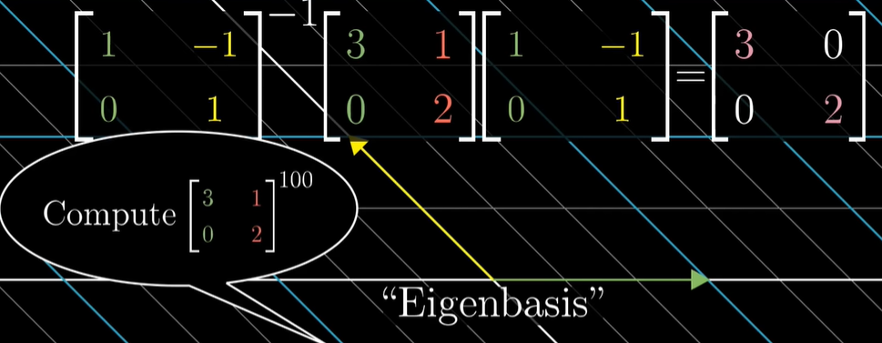 대각행렬이 다루기 좋은 이뉴는 스스로를 계속 곱해도 계산하기 쉽다는 것이다.