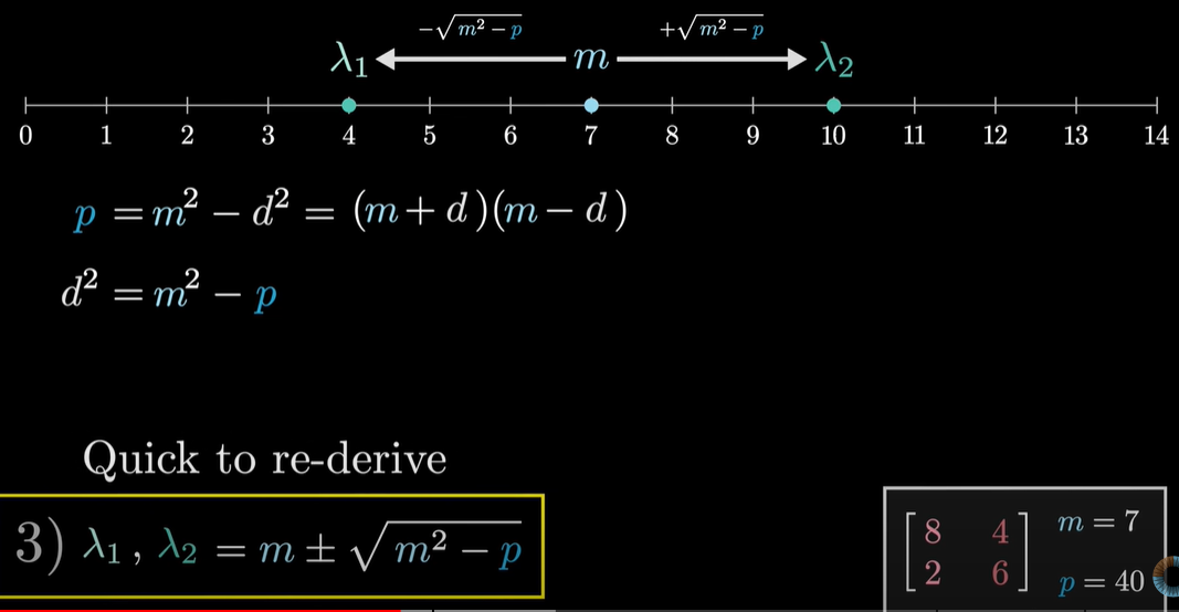 3. 빠르게 고유치를 계산하는 식을 세울 수 있다. mean-product formula