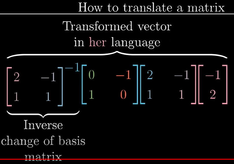 그녀의 기저벡터를 우리의 언어로 바꾸는 열이 있는 행렬을 사용하면 된다.
