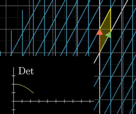 완전히 한 선을 이루면 행렬식은 0이다. 계속해서 넘어가면 행렬식은 음수가 될 수 있다.