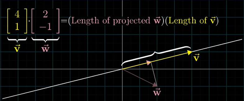 w 벡터가 v 벡터 선 위로 투영된 이 길이에 벡터 v의 길이를 곱하는 것이다.