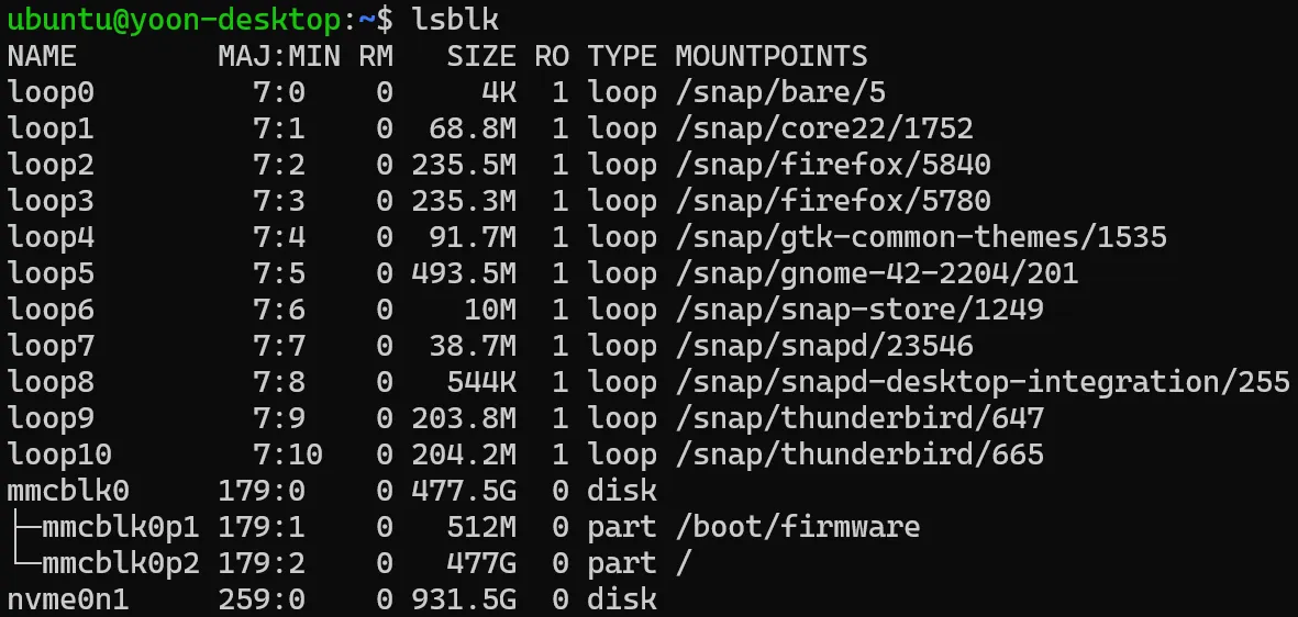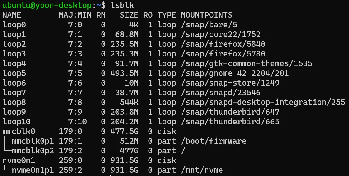 출력 결과에 nvme0n1 같은 장치가 보인다면 NVMe SSD가 정상적으로 인식된 겁니다!