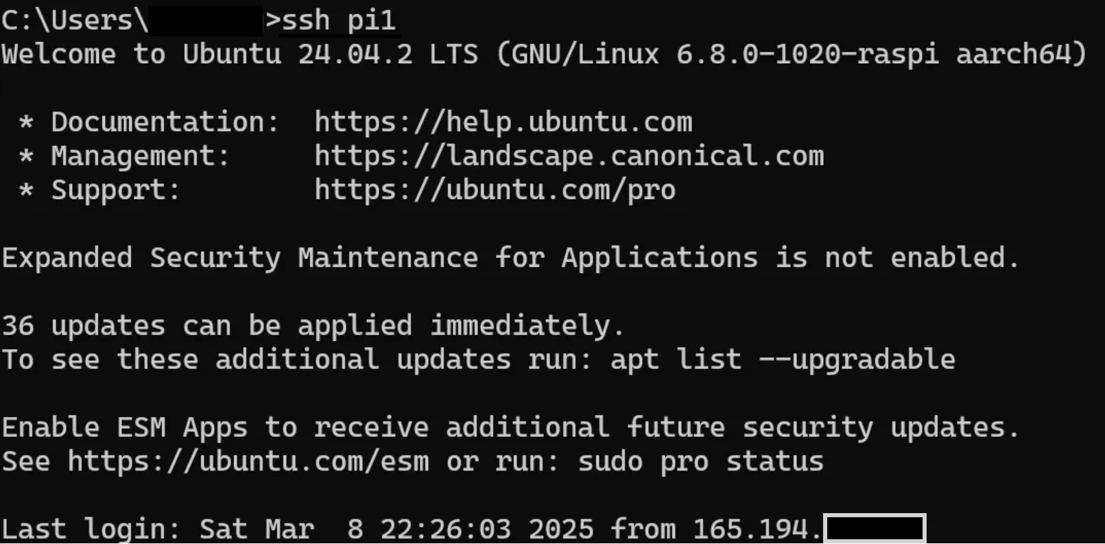 ssh ubuntu@xxx.xxx.xx.xx # pi1 IP 주소
