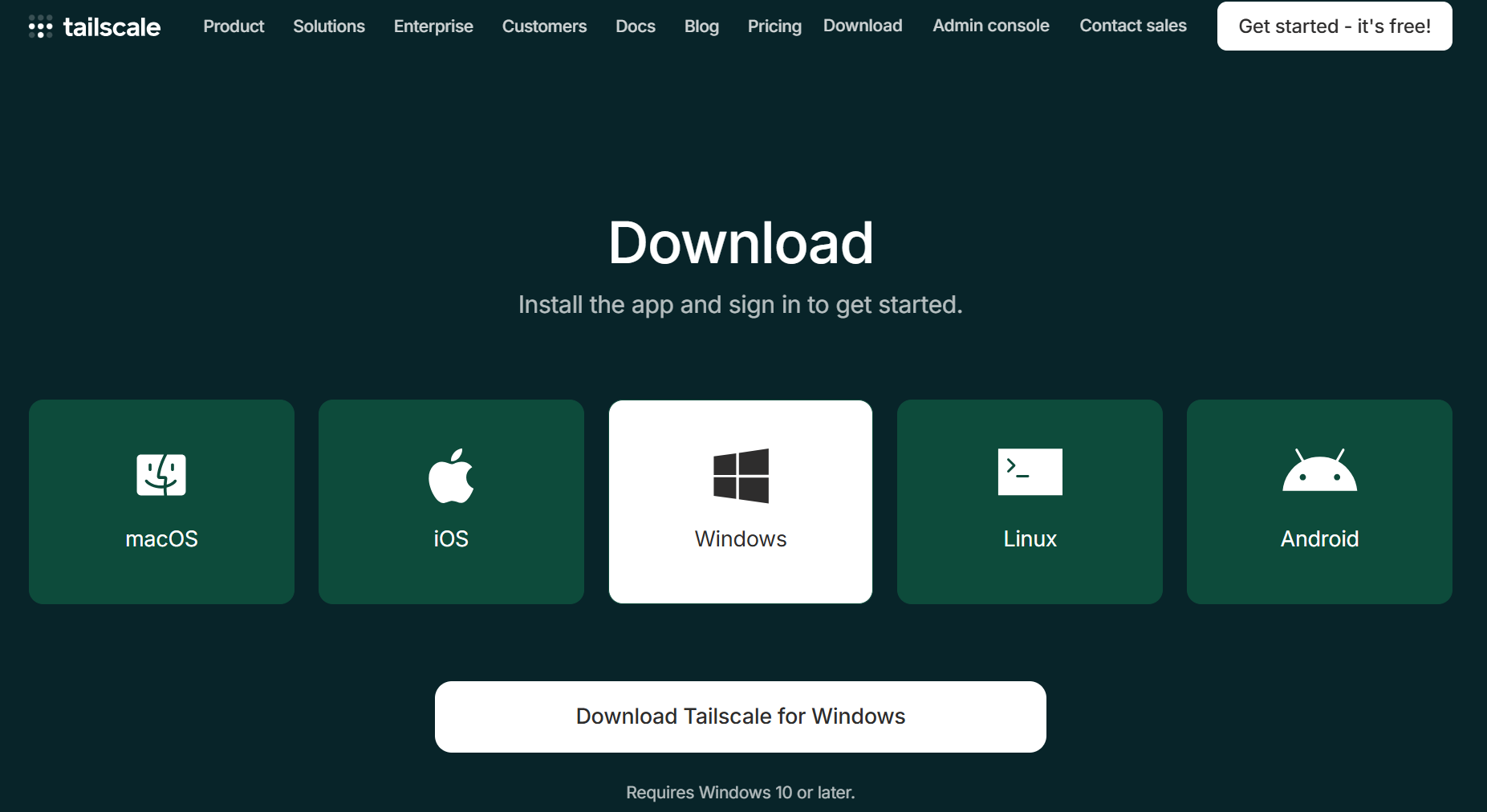 - Tailscale 공식 웹사이트에서 Windows 설치 파일을 다운로드합니다