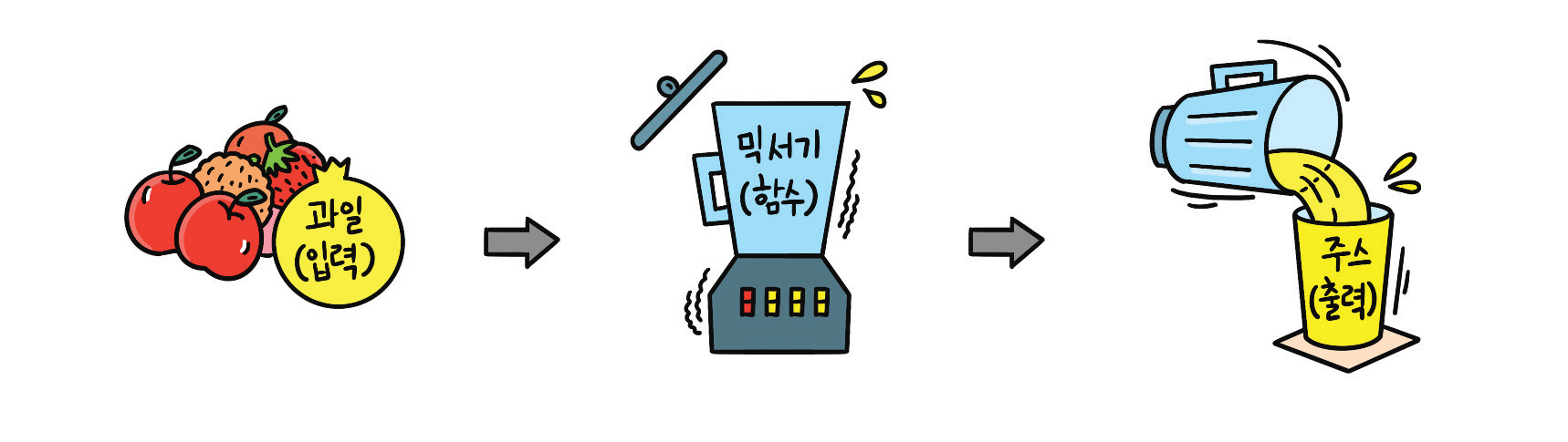 함수가 뭘까? 과일을 입력받아 주스를 출력하는 '믹서'와 같다.
